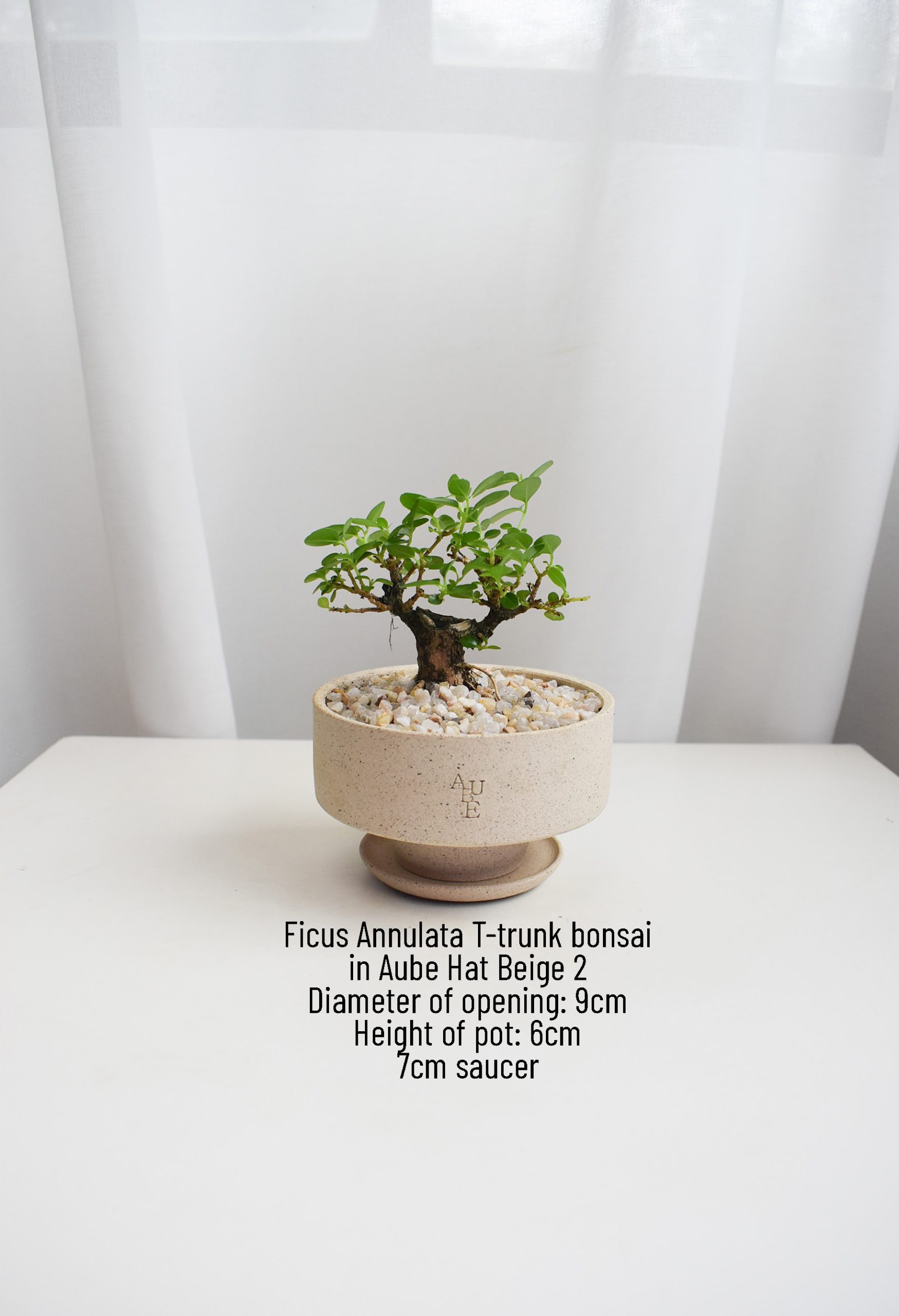 Pot & Size | Aube Hat Beige 2 no saucer, Aube Hat Beige 2 with saucer |